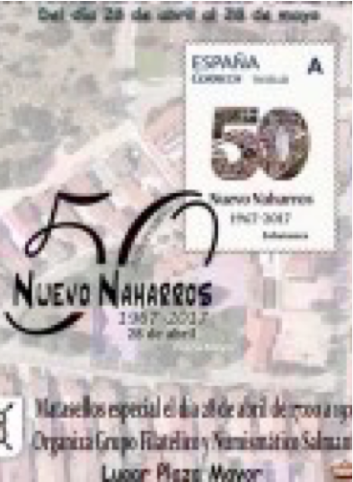 “Organizada por el Grupo Filatélico y Numismático Salmantino, el pasado 28 de abril, se inauguraba en NUEVO NAHARROS una exposición multidisciplinar, había, sellos, billetes, monedas, cupones, fotos antiguas del pueblo etc., para conmemorar el 50 Aniversario de la Fundación en 1967 del pueblo de colonos perteneciente al término municipal de Pelabravo. (Salamanca)